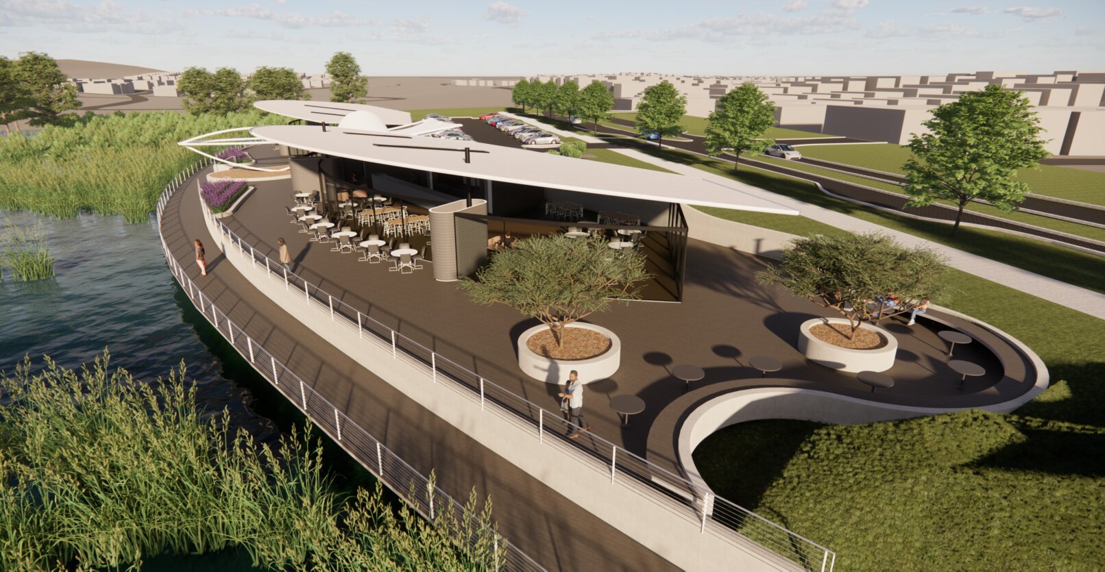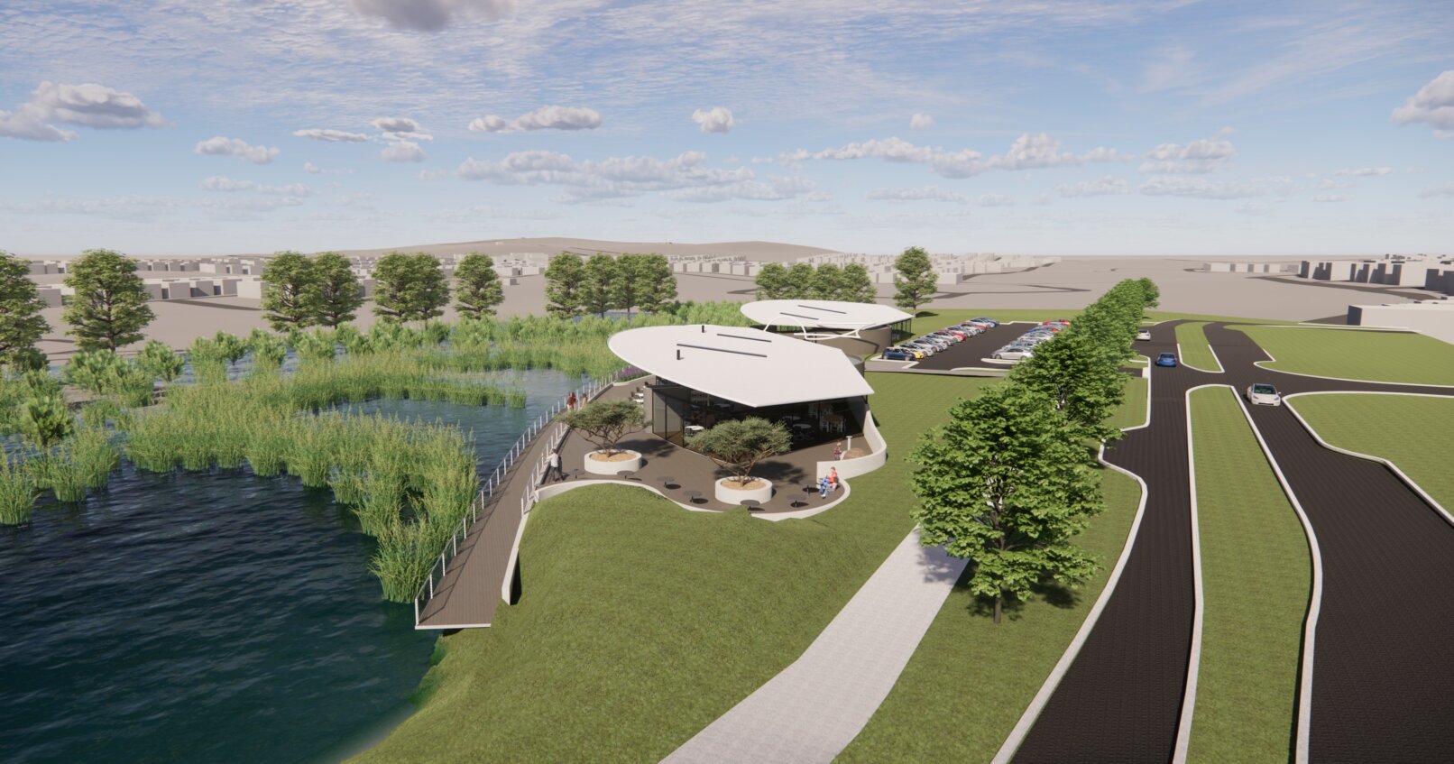 The recent residential subdivision in Armstrong Creek included a large lake and landscaping for the new residents and to encourage biodiversity. Along the lakefront a new restaurant complex is proposed.