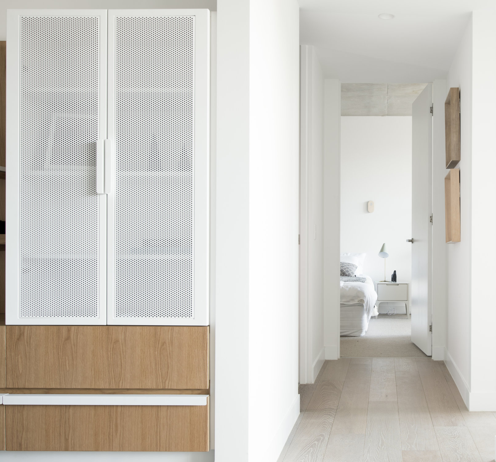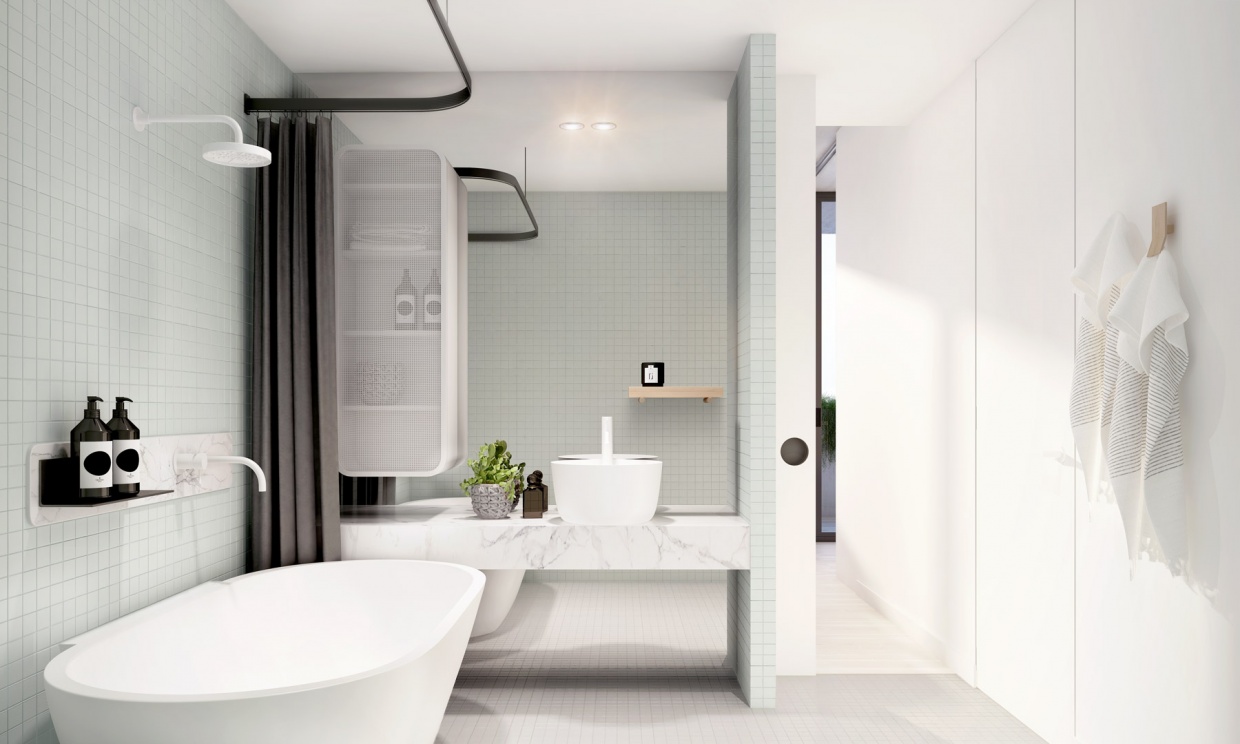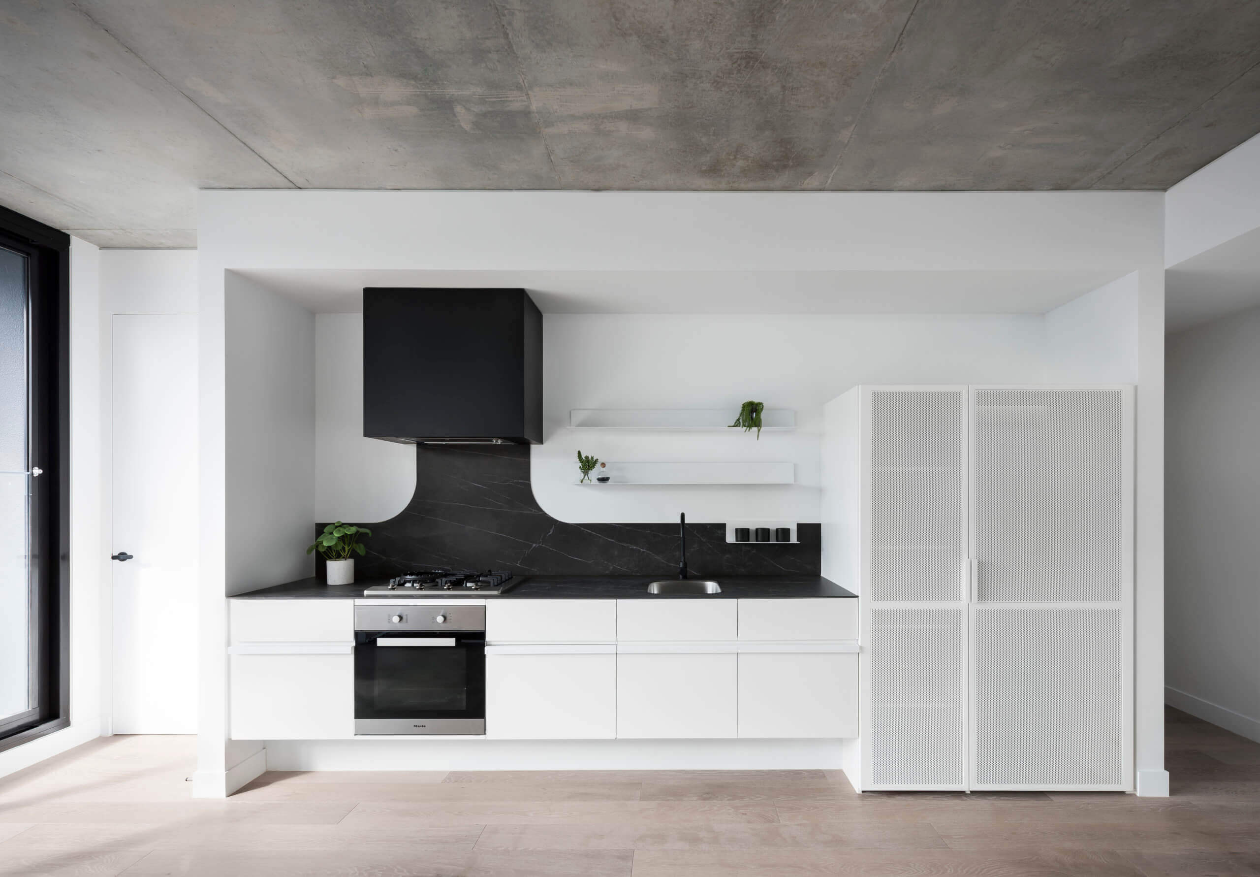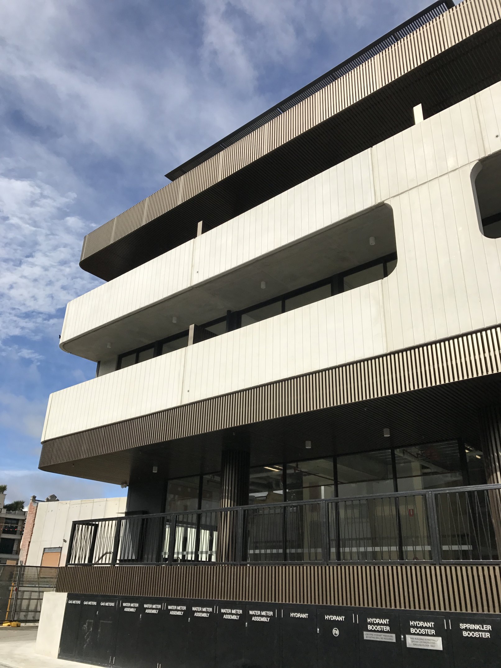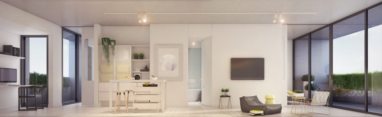 Luton lane is a composition of three materials, white off form precast profiled concrete wrapping around the base levels, intricate timber battening weaving from the entry to the roof, and lush green landscaping tying the elements together. The fineness of detail and freshness of the material palette set it apart from its context and create a welcoming residential address.